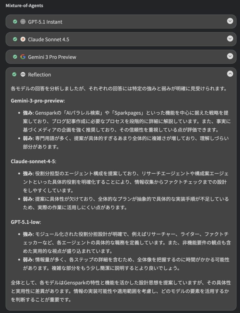 - Mixture of Agentsで3つのAIが協働→統合回答(クレジット消費なし!)