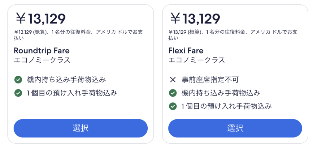 もし予約時にFlexi料金と通常料金が同じか近い価格なら、迷わずFlexi料金を選ぶことをおすすめします。