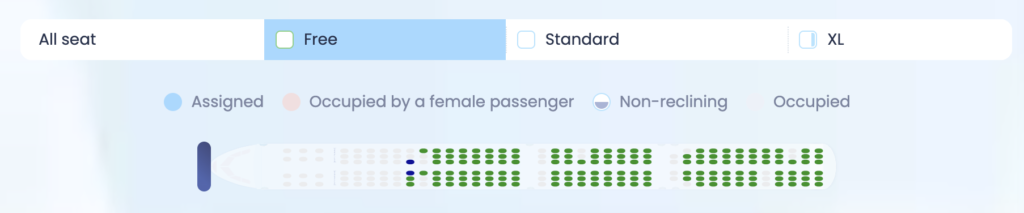 - 無料で選択できる座席の範囲が非常に広い(前方、通路側、窓側など)