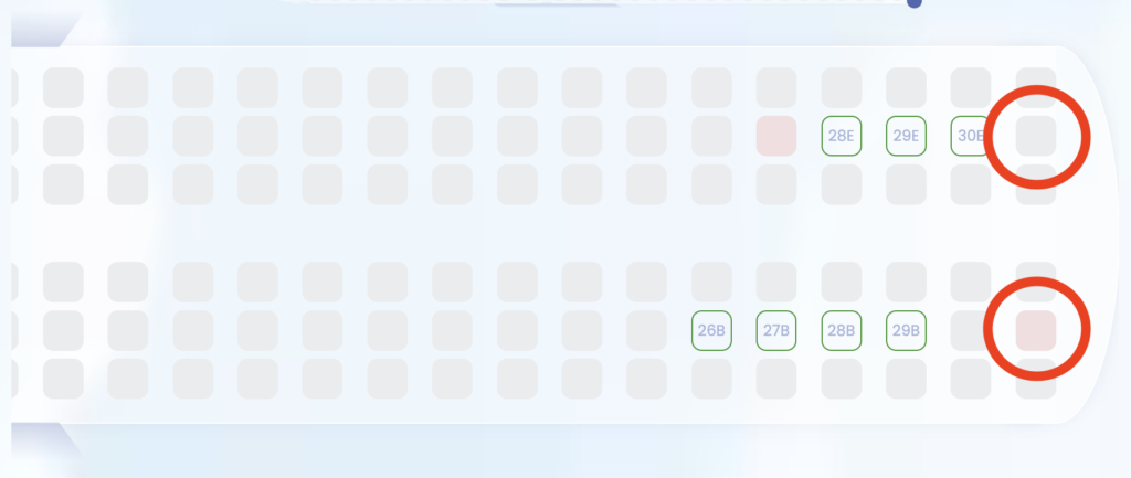 そういう場合、無料で選べる最後尾席を選ぶのは悪くない選択だと思います。まあ、4ドルくらいなら自腹で払ってもいいかなって気もしますが、そこは人それぞれですね。