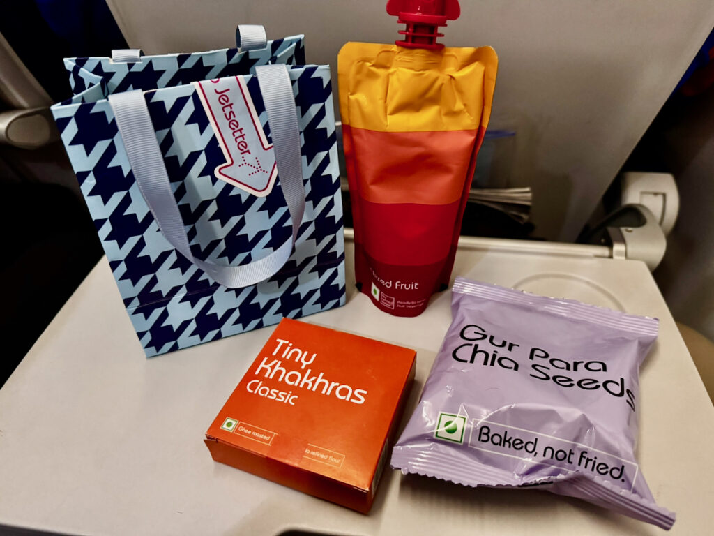 - 「6E Tiffin」というスナックバッグが含まれる(機内で提供される軽食セット)