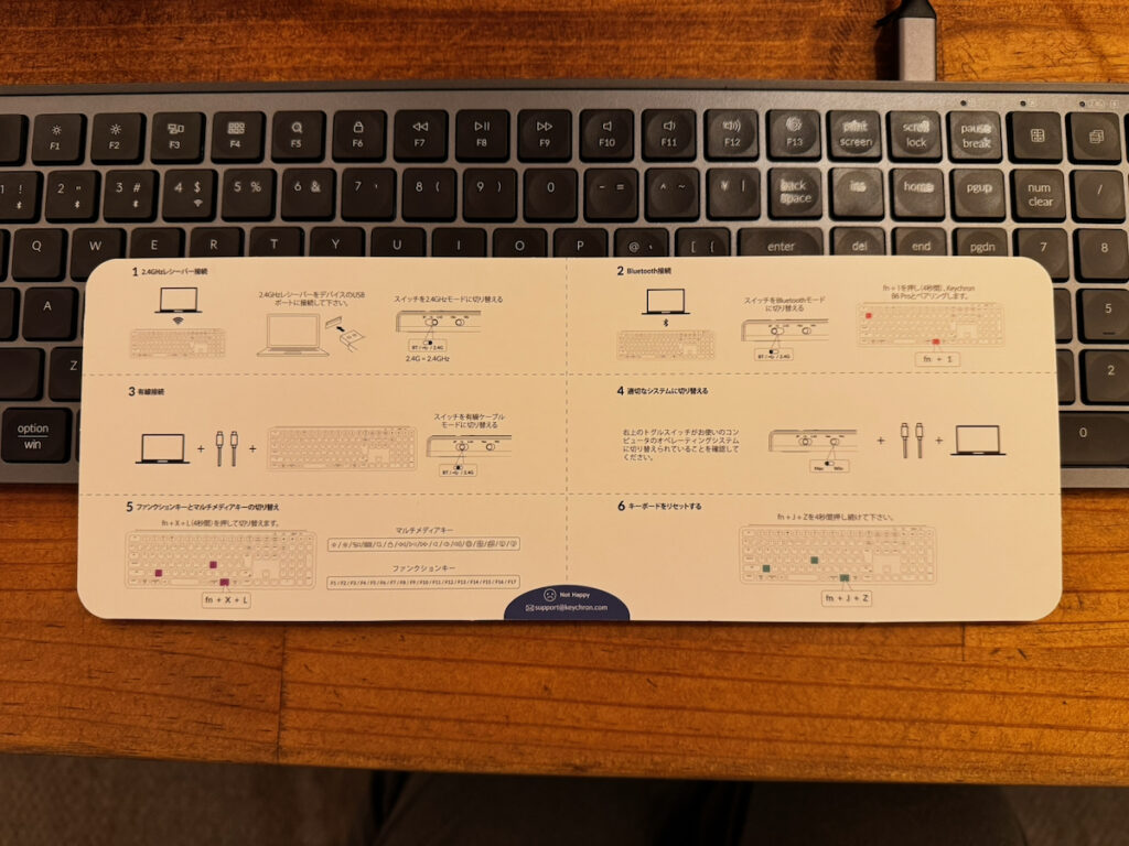 ただ、Bluetoothのペアリングが「Fn+1(テンキーじゃないほう)を約4秒長押し」という仕様。 直感的ではないので、取説を一度ちゃんと読むのが吉です。