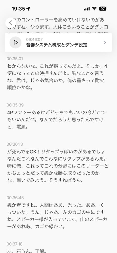 音が小さすぎるのか、ほとんど文字起こしされなかったし、仕方ないので録音を自分で聞いて手動文字起こししようとしても聞き取れる音質ではなかった。