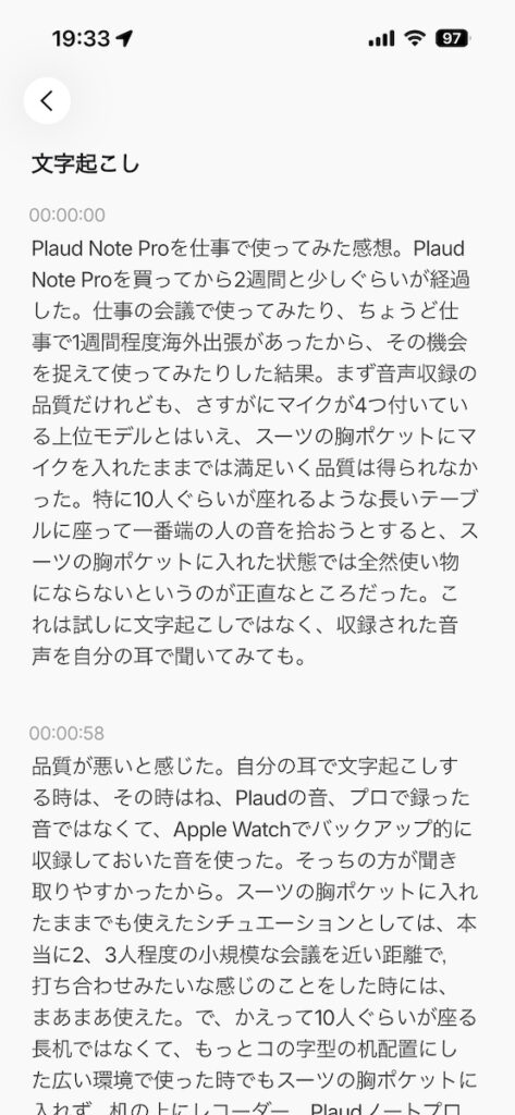 まず結論。ハードウェアとしての録音性能や文字起こし精度は全然完璧じゃない。
