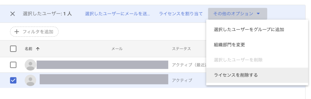 手順3:罠1「Workspaceライセンスが外せない」→自動割り当てを止める